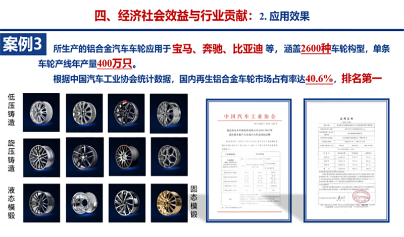三是发明了铝合金车轮低压双边浇立式旋压新方法,突破了形性协同导向的铝合金车轮压铸智能温控模具优化技术,构建了铝合金车轮洁净切削自适应工艺策略与智能检测产线,提升车轮抗拉强度、延伸率,降低夹渣报废率。